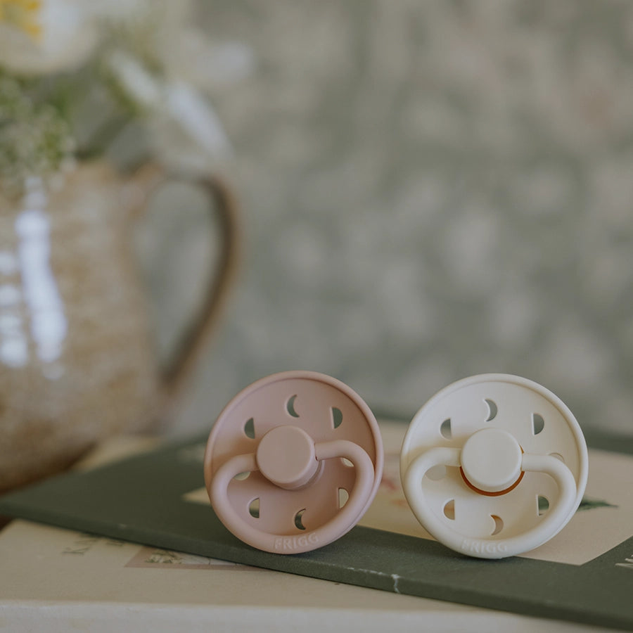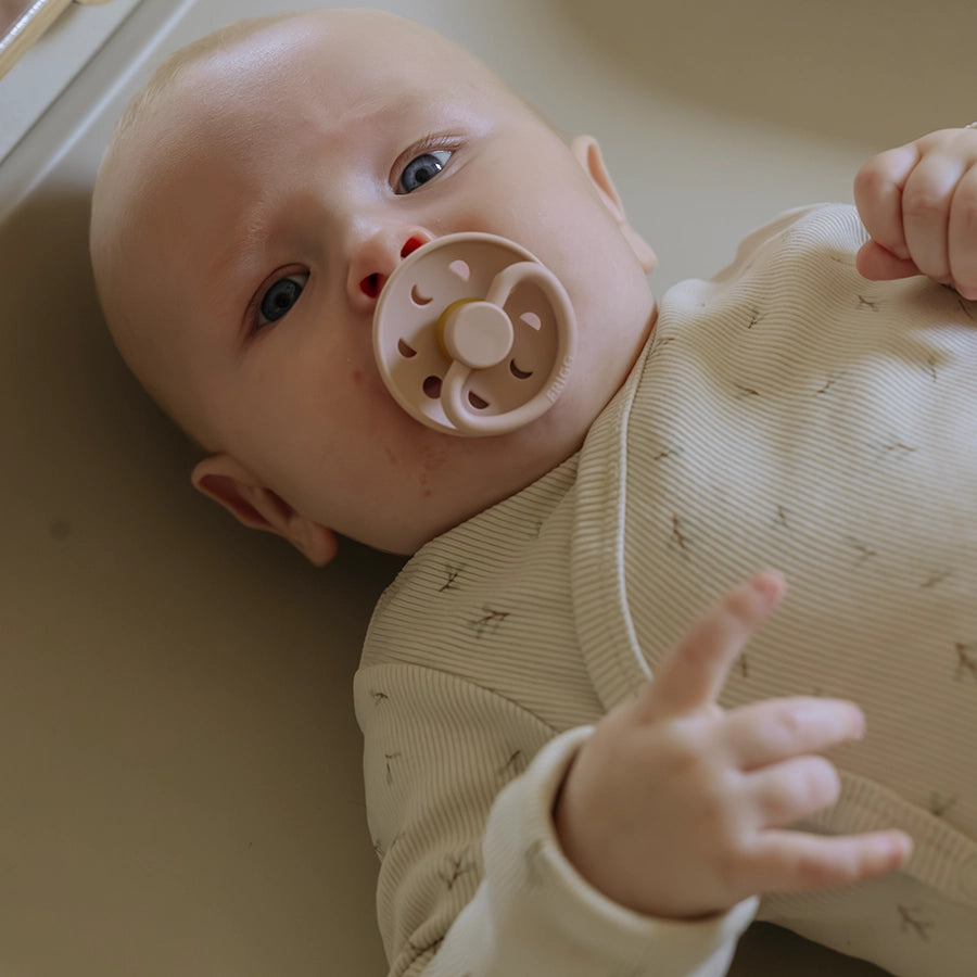 Les sucettes existent sous différentes formes, matières et styles. Chaque modèle est conçu pour répondre à des besoins et des préférences spécifiques, afin que chaque bébé trouve celle qui lui convient parfaitement. Le choix de la forme de la tétine joue un rôle clé dans l’acceptation de la sucette par votre bébé, et dans les bienfaits à long terme. C’est pourquoi FRIGG propose une gamme soigneusement sélectionnée de formes de tétines, adaptées aux besoins variés des tout-petits.