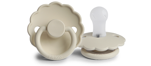 FRIGG Daisy is a round pacifier with a nipple that imitates a mother’s breast to make it as natural and comforting for the child to use as possible. The FRIGG Silicone pacifier has a smooth nipple surface called SilkySoft which is made in allergy-friendly medical grade silicone.