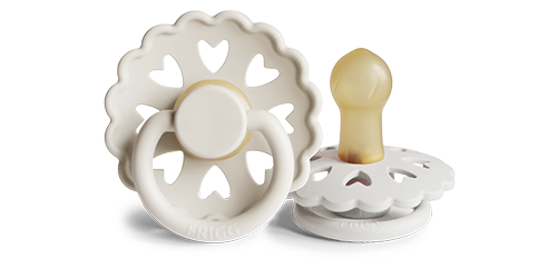 FRIGG Fairytale is a round pacifier with a nipple that imitate a mother’s breast to make it as natural and comforting for the child to use as possible. The FRIGG Latex pacifier has a soft and elastic nipple in natural rubber.