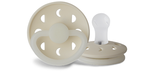 FRIGG Moon Phase is a round pacifier with a nipple that imitates a mother’s breast to make it as natural and comforting for the child to use as possible. FRIGG Night is equipped with a gentle glow-in-the-dark function
