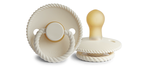 FRIGG Rope is a round pacifier with a nipple that imitates a mother’s breast to make it as natural and comforting for the child to use as possible. The FRIGG Latex pacifier has a soft and elastic nipple in natural rubber.