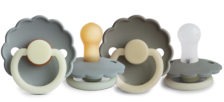 FRIGG Night pacifiers are available with a nipple in medical grade silicone and natural rubber.
