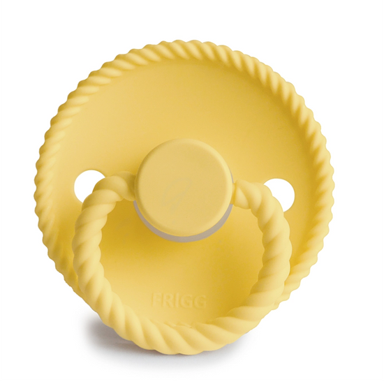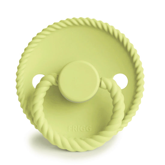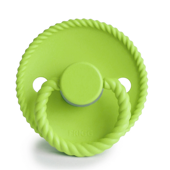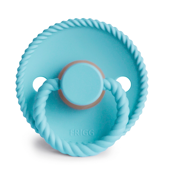 FRIGG Rope pacifiers are available with a nipple in medical grade silicone and natural rubber.