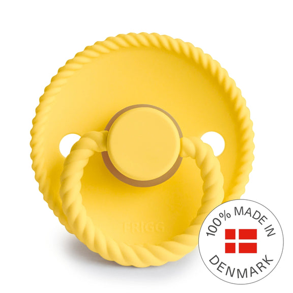 Each FRIGG pacifier is a fusion of minimalist design and purposeful function. Made in Denmark, FRIGG - Rope Latex Size 2 - Sunflower combines elegance with daily practicality, built to meet the highest standards for baby safety and comfort.
