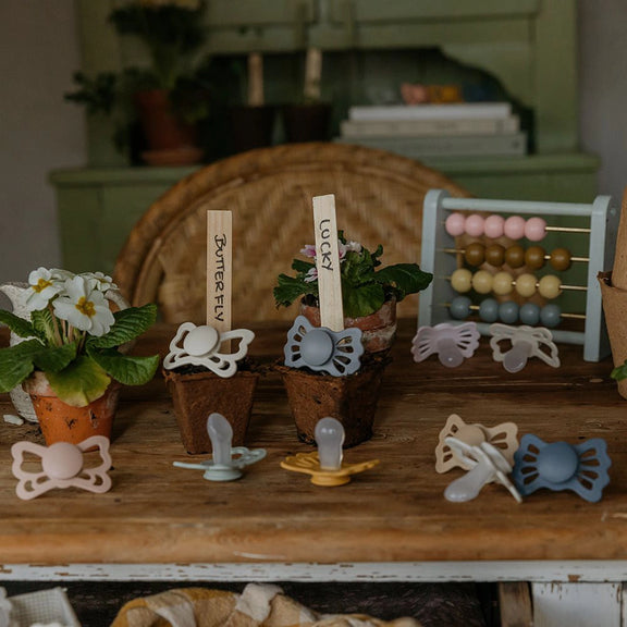 Each pacifier is fitted with a medical grade silicone nipple and crafted in Denmark to meet the highest standards of safety, softness, and thoughtful design.