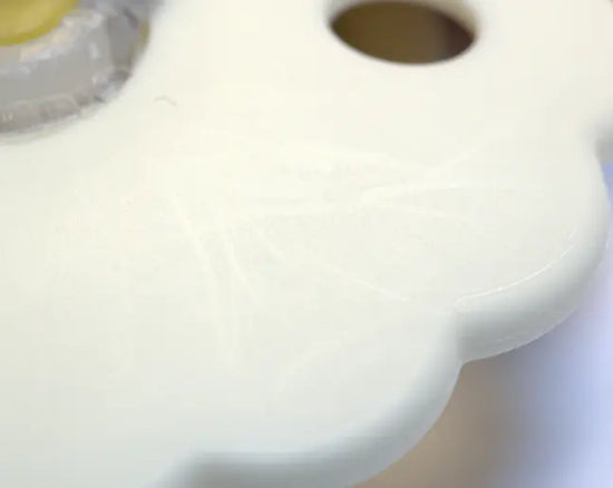 As soon as your child starts teething, it’s important to check the pacifier on a daily basis. You can do this by pulling the nipple and check for damages. If you see any damage, stop using the pacifier and discard it immediately. Below, you’ll find documented examples of pacifier damage resulting from teething.
